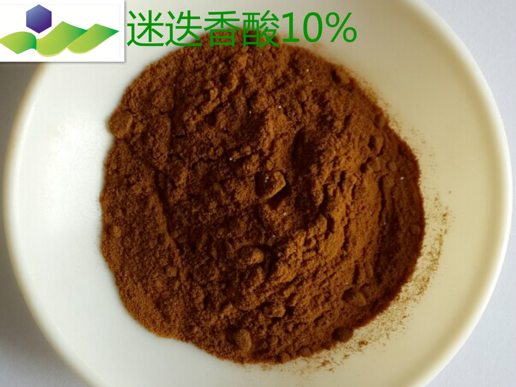 - ·产品介绍: 迷迭香酸是一种天然多功能酚酸类化合物。迷迭香酸具有抑菌、抗炎、抗病毒、抗肿瘤、抗过敏、抗氧化、抗血栓抗血小板聚集、防辐射和免疫抑制作用,迷迭香酸对神经系统有抗焦虑作用,对细胞损伤有保护作用,广泛应用于食品、化妆品、医药等方面。